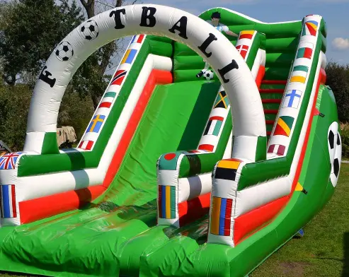 1Tradycyjna zjeżdżalnia w klimacie piłkarskim na wydarzenia sportowe. Sprawdzi się jako zestaw z urządzeniami typu gigantyczne piłkarzyki